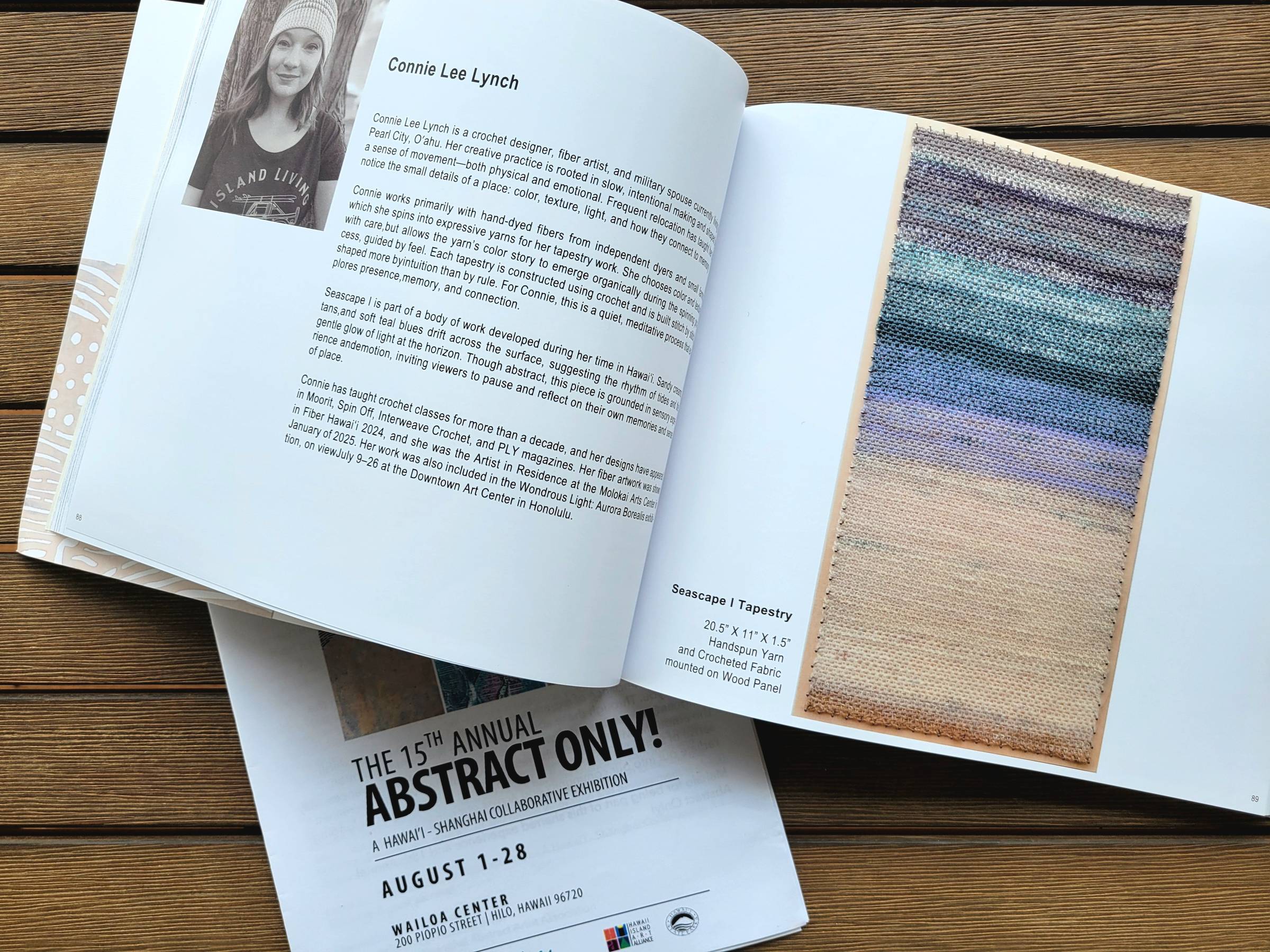 Yay, we made the trip!! I wasn't sure that we would be able to make it happen when I first found out I was invited to be part of the show, but I'm so very glad we did! This is actually the first picture I have of me with my husband and my art. Long time coming, eh? (Yes, those are scorpions on his shirt; he was on the Scorpion Team at NTC when we lived at Fort Irwin.) Here's a zoomed out view from inside the gallery: Seascape I is on the far right. There were a few other fiber/textile pieces, plus a lot of paintings, some photography, and a few sculptures. But no other crocheting that I saw! Maybe no knitting, either, now that I think about it... It was such a cool show, though! I love abstract art. It's just so... emotive! The gallery itself was also pretty neat. The building is round! I could have walked around it in endless circles for hours and kept noticing new things. There were so many beautiful colors and textures! You can see more pictures and read all about our latest adventure on the Big Island here, if you'd like. And if you'd like to see even more of the artwork, be sure to check out the online store. Even if you're not interested in or able to make a purchase, browsing through the exhibit shop gives you a pretty good feel for the show. Of course, so does the book! I didn't get to see it until we got into the gallery, but it's really nice to be able to sit down and read more about all the different works and the artists who created them. Plus there's just always something extra fun about seeing my name and my work in print! Ah, what an adventure. If you have the time, you really should go check out my longer post on Patreon. It's chock-full of pictures! Our visit to the Big Island may have been short, but we saw a lot of things and had a lot of fun. I'm sad that it may be our last time there, but you never know! (I'm still holding out hope that I'll get into one of the National Parks residency programs.) In other news this week, I got started on the spinning for my new Molokai Tapestry! I'll be sharing more about that soon (along with more pictures, of course) on Patreon, so stay tuned! Actually, if you have joined me there as either a free or paid member, be sure to check out the community chat because I share daily-ish updates there. Let's see if this link works to take you there? You'll have to be logged in. If you're not already following along with me on Patreon, you can join me as a free member here to check things out! Okay, I think that's probably enough from me for today. I promised myself I wouldn't gush about the art gallery all over again since I already wrote one really chatty post about it! I took over a hundred pictures in our two days there, though, ha ha, so I had to do something with all of that adventuresome goodness! The Hawaiʻi Volcanoes National Park was, of course, picturesque as always. Between the park and the art gallery, I suppose it's no wonder I left with tons of photos, right?