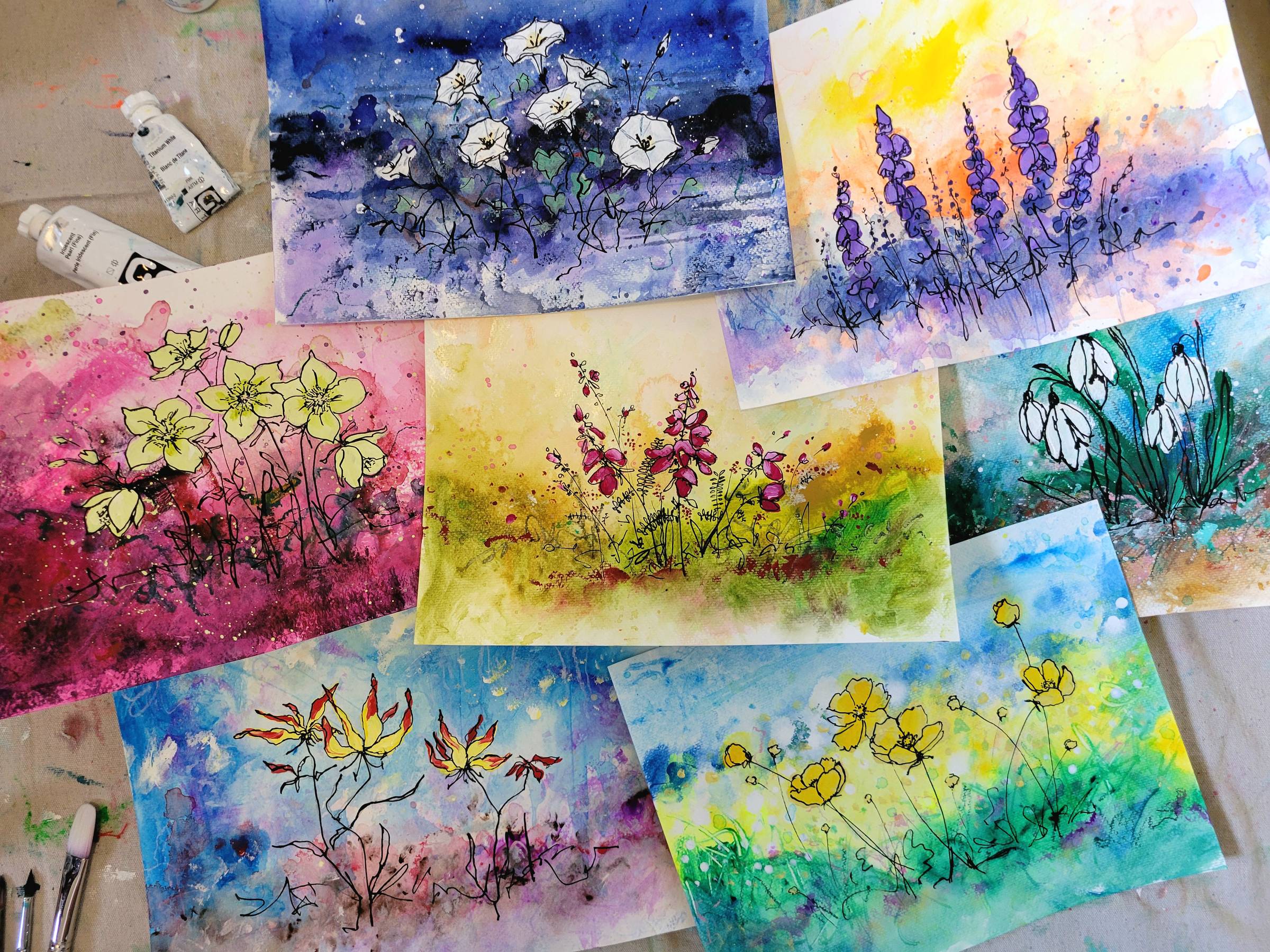 This past week I've been bouncing back and forth between crocheting and painting a lot. With a little bit of computer work thrown in. And reading, too! Brain needs a break sometimes. I'm getting SO CLOSE to finishing the shawl with Ethan's yarn! I'm on the very last stretch now, with the last color. And amazingly, I am not at all tired of this color palette yet! I mean, I love green anyway, but these greens? These greens are my JAM. That bright spring green, especially, just makes me so happy every time I pick it up! Verdant, I believe, is the colorway name. And it gets its own time to sing on the other end of the shawl! Wish me luck finding the space to block this thing, though. It's just so luxuriously long! I can't wait to see how it looks after blocking. Those pesky ends continue insisting on curling. I'll get them in line, though. Should I take bets on how many pins it will take?? 😆 Hopefully, I can get away without too many and embrace some organic swoopy shaping, lol. That's my favorite way to do it! Just pin those corners down and let it be however sassy it wants to be! I just hope I have enough blocking boards. And enough floor space... Speaking of floor space, the floor in my studio is a huge mess right now because of all the painting I've been doing! (And the tapestries, too, let's be honest—I really need to get those up on the wall.) The Bloomtober challenge is coming along all right, though. I'm now seven paintings in! And... I don't hate any of them, lol. Some of them I feel kind of meh about, but you can't get the good art without some bad art, too! Kind of like NOs on submissions. Yes, I got yet another no. Womp womp. Don't let my flippant attitude fool you. It totally bummed me out for the rest of that day. But. Onward! So what do you think about all these toxic florals?? I definitely have a favorite so far. Any guesses which one? Hit reply and tell me yours! The next prompt is rhododendron and I'm just not feeling it. It's just too... much? I'm not sure how to simplify it. Last time I talked with you about taking inspiration (like a beach/the ocean) and transforming it into art. I usually do that through painting or crochet, obviously. But I've found that simplifying is a key concept for me. Embracing imperfections. Intuitive painting and color choices. Organic lines, both in paint and crochet. Looking for shapes and feelings rather than trying to draw or paint or design the whole thing at once. I especially love the blurry eyed technique, ha ha! Have I ever shared that with you before?? It's just looking at something squinty eyed (or, if you wear them, maybe just take off your glasses) and using that distorted view to help guide your decisions. I use it when I'm arranging color fades with yarn. I do it when I'm sorting and planning fiber for spinning many of my tapestries. And yes, I even do it when painting! Usually when I'm trying to make a decision about what the next step or layer should be. Maybe flower placement or final linework to try and balance some of these guys out a little. Of course, sometimes I end up with four moonflowers all facing the same direction (and why do they all have FACES!?) and it's too late to fix it and I can't unsee it... But you know what? I can still totally see using this as inspiration for some handspun for a tapestry or a crochet design! I could do a whole Toxic Florals Collection, ha ha. ... Hmm. I feel a rabbit hole approaching. Wish me luck! Though I do also really want to try to finish up that shawl, too. Oh, and with it being nearly done, the pattern is also nearly written (you should see me spreadsheet 😆😆😆), so once I pretty that all up and get some nice FO pictures, I'll be looking for some pattern testers. If you'd like to be on the short list for testing it, let me know! You can also join my testing pool on Yarnpond (it's free), which is where I usually hold my tests. Cheers, y'all! P.S. Attitudy Judy has struck out on her own! Or, actually, his, I think. That's okay, I'll still call him Judy if he turns out to be a rooster! (Any Brooklyn Nine-Nine fans here?) We'll see soon enough. |
