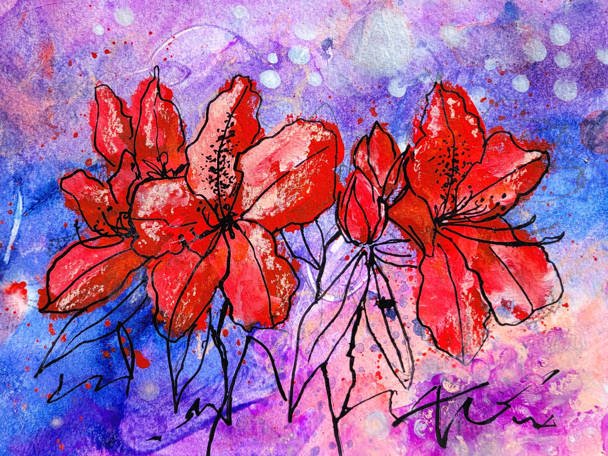 Oh boy do I have a story for you this week! So the kiddo had a four day weekend (Parent Teacher Conferences) and on Tuesday I was really looking forward to some quiet, productive time. (Spoiler alert: I didn't get it.) I hadn't managed to get my tutorial to finish up the shawl filmed over the long weekend for obvious reasons and I'd also fallen behind on my Bloomtober paintings. (Chime in on whether or not you think I should do a Toxic Florals Collection here, by the way!) That morning, I had was a nice long to do list sketched out in pencil beside my coffee cup and I was actually looking forward to (some of) it, for a change. Cue a horrendous ruckus in the backyard. I jumped up and ran out the back door to witness a mongoose killing a baby chicken, multitudinous chickens screaming and running everywhere, and the landscapers zooming by on their riding lawnmowers just to make it all even more chaotic. When I realized it was too late for at least one of poor Dipper's brand new babies, I stopped waving the broom around like a madwoman and sadly went back inside and watched her continue to cry out warnings to her remaining babies. Four of the six eventually turned back up, so at least she didn't lose them all. Meanwhile, back inside the house, after having a bit of a cry, I admit (it's hard to watch helpless creatures die, even when it's part of the circle of life and all that), I noticed Truman (the cat) was playing with something under the couch. I'd already picked up two skittles out of the floor by the couch on two separate occasions that morning, so I thought it was probably another skittle since they're exactly the sort of thing he would love to swat and watch skitter across the floor. So I lift up the flap on the back of the couch and see... no skittle on the floor. I lean down and look further under the couch and my brain screams, "Mongoose!" and I snatch up the cat and run to lock him in the bathroom. The couch then received the beating of its life. It was then moved, vacuumed, moved again, and had its footrests extended and back flaps pinned up to fully expose it to the best of my ability. Nothing. I let the cat out of the bathroom and he crawled through the couch once, sniffed around, and then went and flopped down on the landing halfway up the stairs. Like so: Huh. I decided perhaps I simply had mongoose on the brain and had imagined seeing the thing under the couch. Still not certain, of course, I sat and stared at my exposed couch for some time while finishing another cup of coffee. Still nothing. I must have imagined it. Right? I had called my husband at some point during all of this and when he sent me a text back I told him everything was fine but that there may or may not have been a mongoose in the couch and that he could help me turn it upside down and I'd tell him the story when he got home. His response? "You mean like the outdoor couch right? Right?!" One minute later: "Right!?!?" Umm... I reassured him that I didn't actually see one FOR SURE and that even if I did it could have run out the open back door while I was wailing on the couch. Eventually, I gave up my watchpost (the coffee was gone, after all) and headed upstairs to work on finishing up one of the paintings and set up for my tutorial. Rhododendron = meh. Oh well. I paused before beginning the tutorial to go refill my coffee one last time and turn up the AC so it wouldn't kick on while I was filming, and there was Truman, playing with something under the couch again. Uh oh. It was the other couch this time, though. Carefully, I pulled it away from the wall and sure enough! There's a beady eyed slinky little mongoose back there! I was NOT crazy!! But there WAS a mongoose in my house. 👀 I chased that thing back and forth and back and forth under the couch and along the wall and then it was just... gone. I did NOT see it go out the back door. But it WAS open so that it COULD go out. Clearly, this was a two-person job, since I couldn't both beat on the far side of the couch and watch on the door side of the couch to see that the thing actually ran out the door. Eventually, I gave up. Again. Truman investigated and acted like he was pretty convinced there might still be a mongoose up inside the (other) couch. So I sat in the floor with my sneakers on (I was totally wishing I had boots—mongooses can be mean little things I've read!) for an hour while I waited for someone from housing to come help me chase the stubborn rodent out of my house. They finally showed up and turned both my couches on their fronts and then their backs to investigate with lights and phone pictures inside the underpart cavities and beat on my poor couches some more with both the front and back doors flung wide open to allow an escaping mongoose optimal exit options. With Truman locked in the bathroom again. Nothing. They think it must have snuck past me on my second go around with it. One of them was clearly disappointed that he didn't get to see a mongoose up close. He asked me, "Did you actually see it??" Yep. Definitely. He told me he had one die in his vents one time. 🤢 Then another hour or so later Terminex showed up and proceeded to abuse my couches once more for good measure, even though I told them the guys from housing were pretty sure it wasn't in the house anymore. Truman, of course, got locked in the bathroom yet again. I would say poor Truman, but he was pretty useless. While I was chasing that mongoose back and forth? He sat in a corner across the room and just watched! Useless beast. Needless to say, I did NOT get my tutorial filmed that day. And I slept rather lightly that night. I wish I had gotten a picture of it. My phone, unfortunately, was upstairs during the second assault. You know, for the tutorial that didn't get filmed, lol. There have been no further mongoose sightings. INSIDE the house, at least. So I'm thankful for that. And in the future, I promised I would try to remember not to leave the back door flu