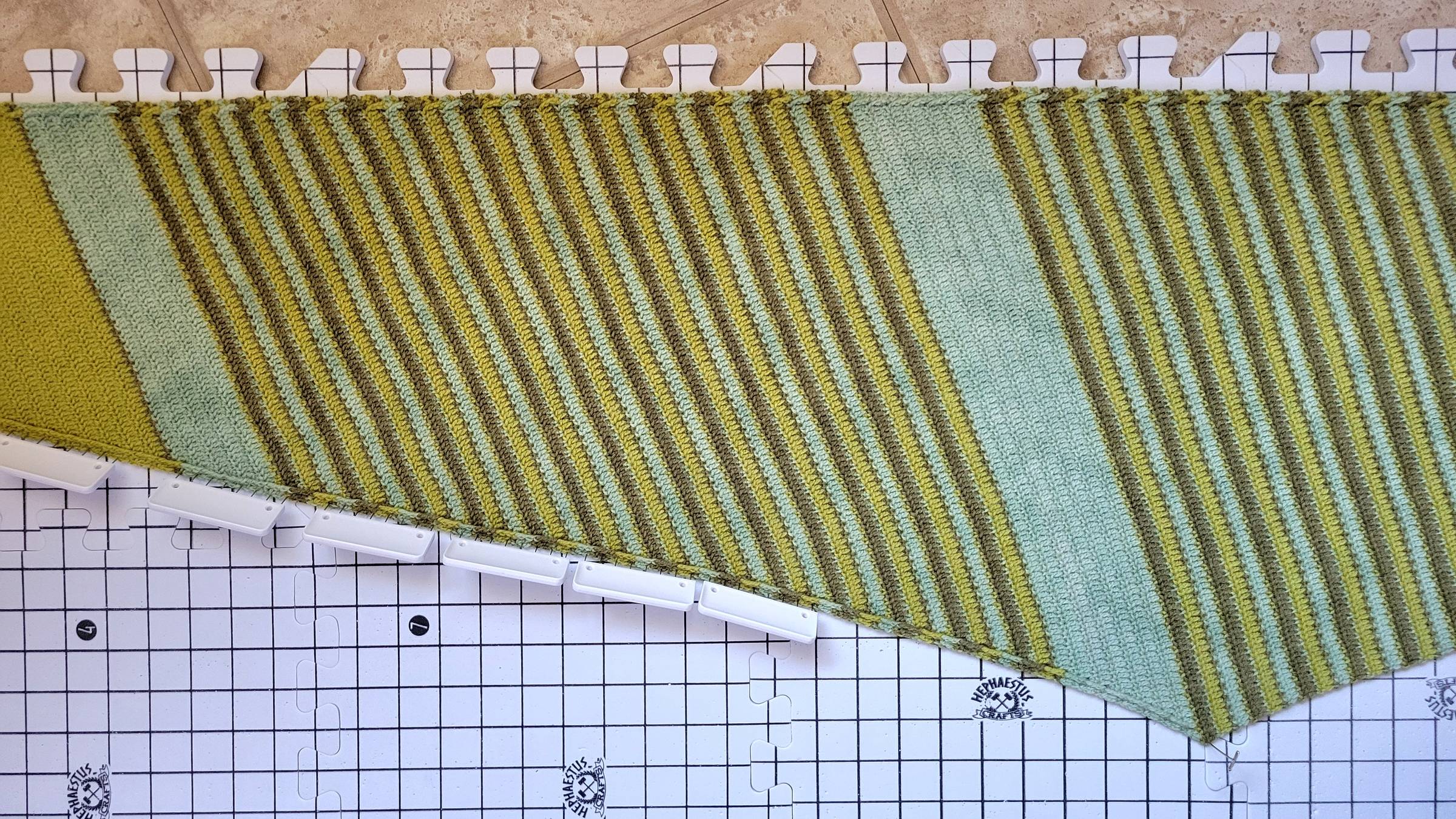 This past week I've been bouncing back and forth between crocheting and painting a lot. With a little bit of computer work thrown in. And reading, too! Brain needs a break sometimes. I'm getting SO CLOSE to finishing the shawl with Ethan's yarn! I'm on the very last stretch now, with the last color. And amazingly, I am not at all tired of this color palette yet! I mean, I love green anyway, but these greens? These greens are my JAM. That bright spring green, especially, just makes me so happy...