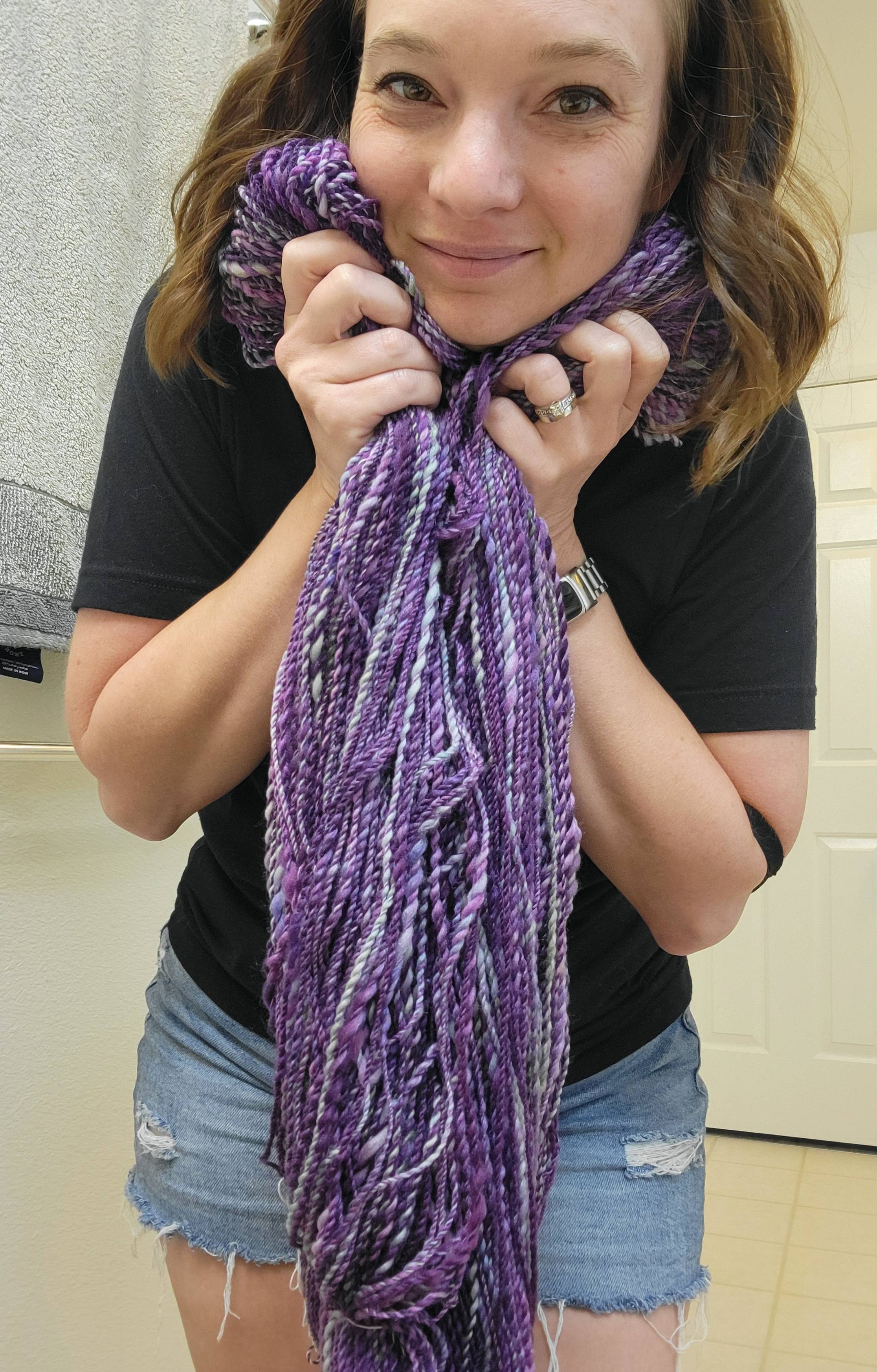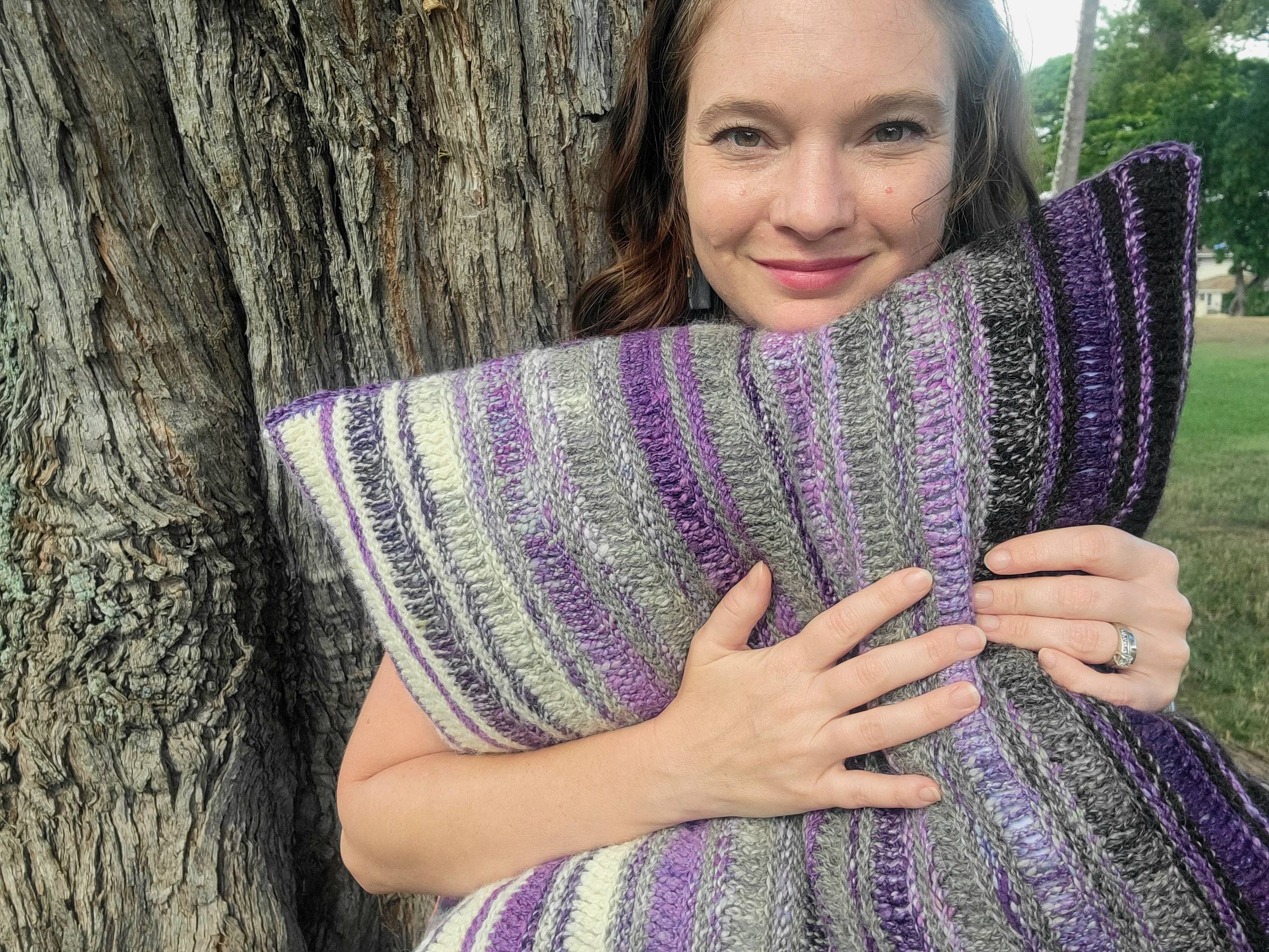 I don't do many magazine submissions anymore, partly because so many print magazines have, sadly, shut down, but I do have a soft spot for Spin Off magazine because I love seeing some handspun specifically for crochet! So when the Associate Editor reached out to me about a potential crochet design for their color issue, I was instantly both excited and intrigued! If you've been here with me for a while, you know I LOVE color play with my work and so this was the perfect challenge. We went back and forth a bit with some different ideas, but finally decided on a neutral fade with a trio of undyed fibers from Northwest Yarns paired with long color change stripes in a scrumptious purple forward colorway called Blackberry from Kim Dyes Yarn. I shared some of my progress as I worked through this project in black and white on Instagram, but I DID get permission to share it in color over on Patreon, so if you're a member with me there, maybe you remember me working on this?? One thing that's really hard with magazine submissions is that you have all this energy and momentum in the creation phase, but you can't SHARE it and TALK about it because it's supposed to be a SECRET. Right!? Which can be fun, sure. Sometimes. But I know, for me, I lose that enthusiasm to talk about the project once it's finished. I mean, I finished this deliciously squishy thing ... almost six months ago! I've moved on. But I must admit that I STILL get all gooshy feeling when I see my name in print. Not that I actually HAVE with this one yet. But it should be on newsstands (literally) now! If... there are actually newsstands left anywhere?? So maybe not literally. But maybe at your favorite LYS or craft store? I haven't checked anywhere yet because I don't have many of those where we live right now. Ben Franklin Crafts is it, and I don't even know if they carry any magazines, to be honest with you! Will have to check that out. In the meantime, if you're like me and don't have someone nearby who carries print fiber arts magazines, you can order the fifth annual color issue of Spin Off online here!